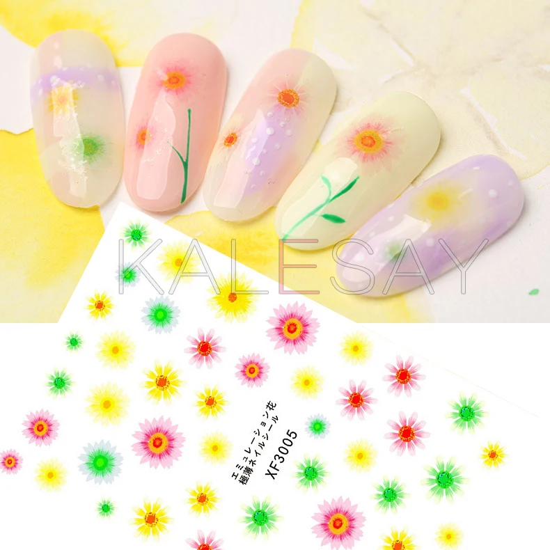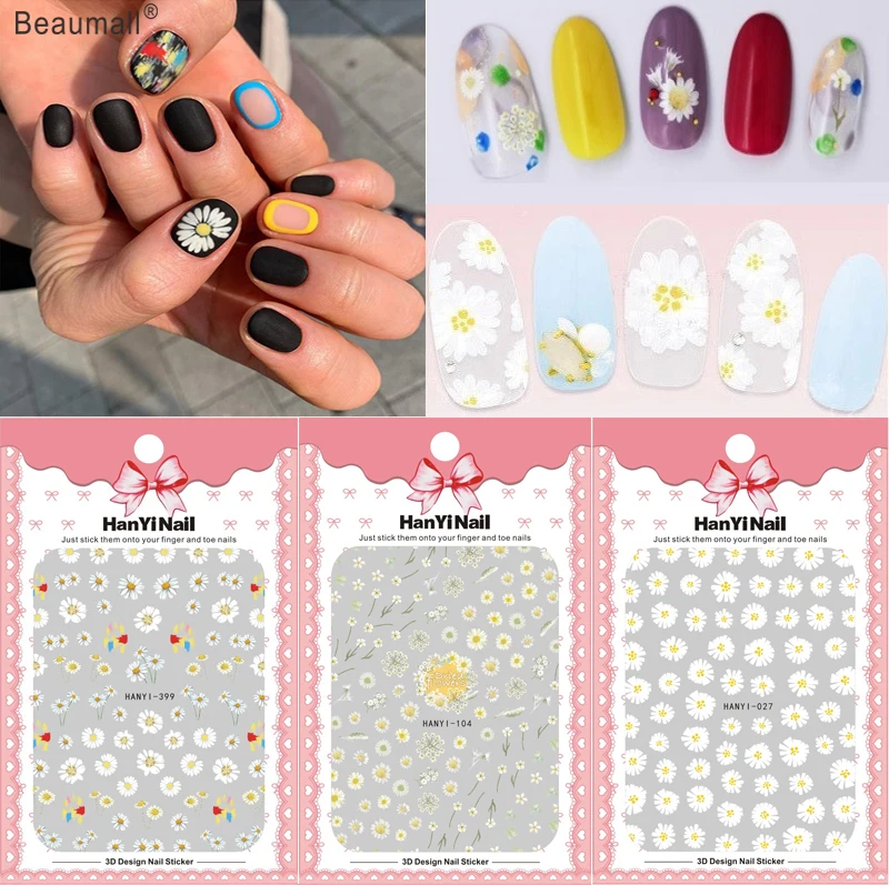 3d Colorful Flower Nail Sticker For Design Decoration Daisy Nail Art Stickers Decals Back Glue Sticker For Nails Manicure Foil Stickers Decals Aliexpress