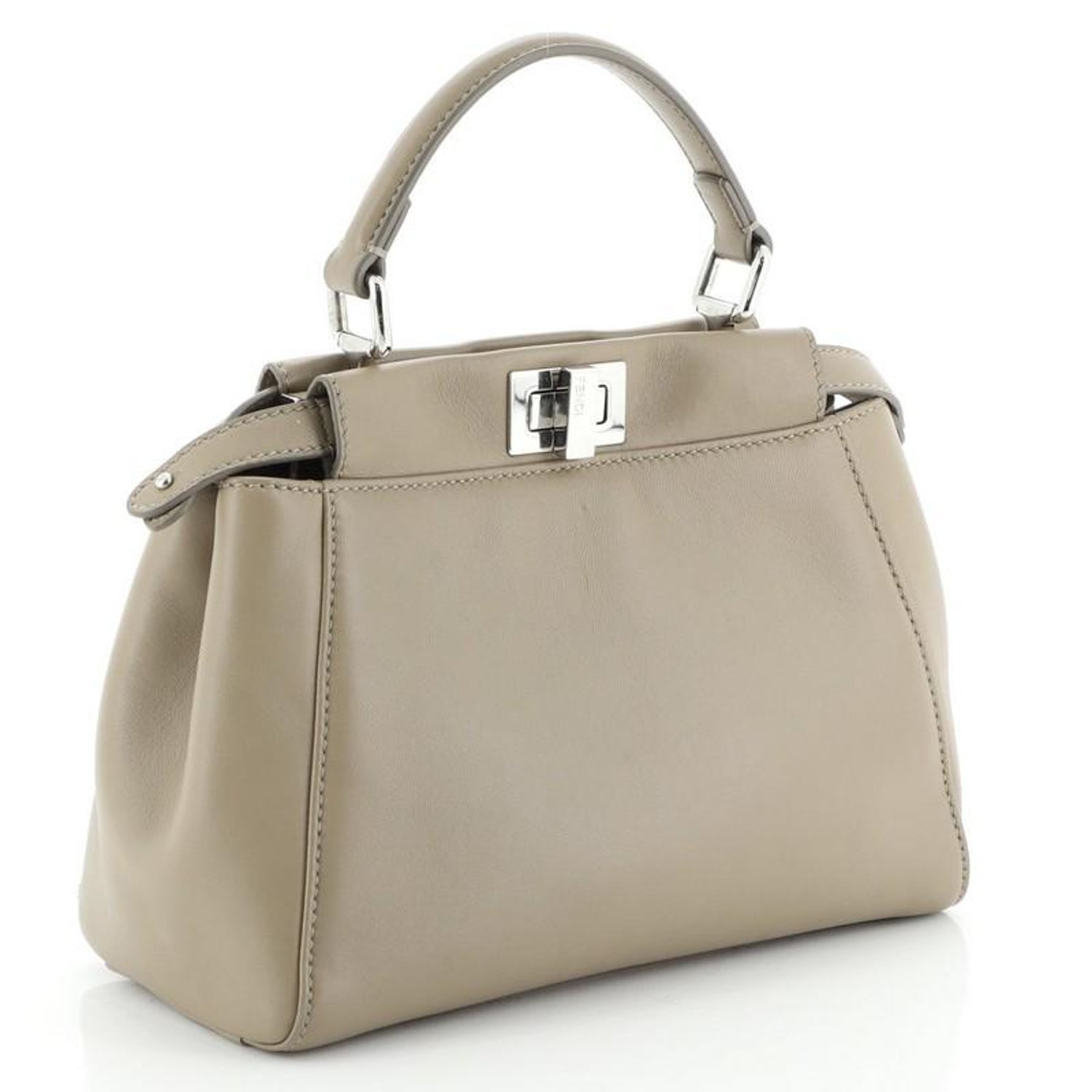 Light grey Cuoio Romano leather bag HK$ 32,800 Medium Peekaboo Xlite bag, made of light grey Cuoio Romano leather, decorated with the classic twist lock and hand stitching Featuring soft. That is especially true of the Baguette bag and the Peekaboo design The handbag whose name is a perfect match for the originality of its design Each brand dreams of inciting timeless desire by designing a bag that achieves worldwide fame Starting in 08, that is just what Fendi managed to do with the bag it called Peekaboo. IMAGE BAGAHOLICBOY The name given to one of Fendi’s signature itbags, the Peekaboo, was first spotted on supermodels like Anja Rubik and Lara Stone when they carried it during the SpringSummer 09 runway show The bag was an immediate hit, identified by its genius construction of two halves separated by a stiff partition in the middle, furnished with a single top handle and twist locks.