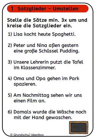 Freiarbeit Kartchen Satzglieder Grundschul Ideenbox