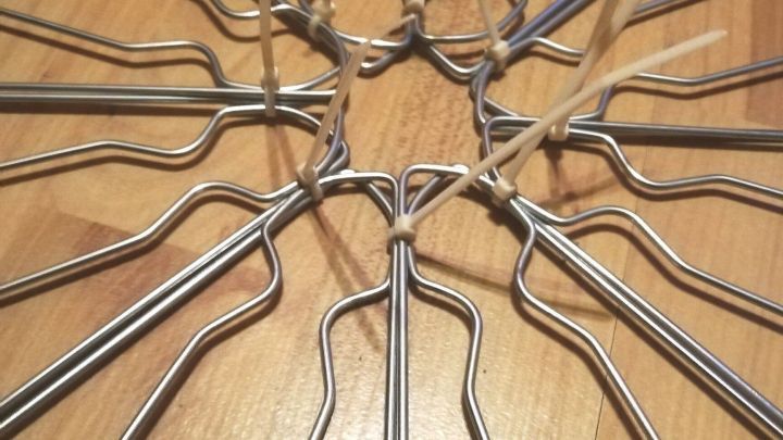 Überzeugt euch selbst und lasst euch inspirieren!. Dekorieren & Basteln Winter, Advents & Weihnachtsdekoration Ein Stern aus Kleiderbügeln 11 Ein Stern aus Kleiderbügeln Als Erstes legt ihr die erste Lage mit 8 Kleiderbügeln so zusammen, wie es hier zu sehen ist Hier zu sehen, wie die Bügel mit den Kabelbindern zusammengefügt werden. In diversen FacebookBastelgruppen boomt dieses Projekt und auf findet man die ansehnlichen Ergebnisse Die Rede ist von Sternen – mit Lichterkette oder ohne –, die aus Kleiderbügeln bestehen!.