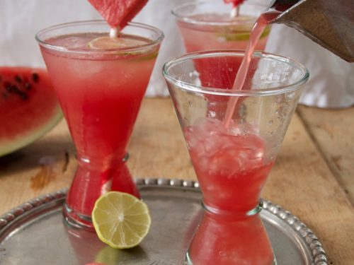 6 cups pureed watermelon $050 4 cups lemon juice $248 6 cups white sugar $174. Pour the purée through a finemesh strainer, and discard the solids Pour the strained watermelon into an icecube tray (plastic, not silicon) Freeze until solid Make simple syrup In a small. To put the Watermelon Lemonade together, add four cups of cold water to a pitcher Next, add in your simple syrup, sugar water, that has cooled, lemon juice, and strained Watermelon juice To kick the Watermelon Lemonade up, even more, add 6 to 8 mint leaves Stir it up, and enjoy it!.