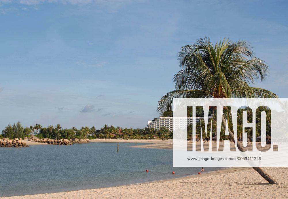 Siloso Beach Im Sentosa Island Resort Von Singapur Es Ist Ein Kunstlicher Strand Mit Sand Aus Malaysia Und Indonesien Ubernommen Stock Foto Getty Images