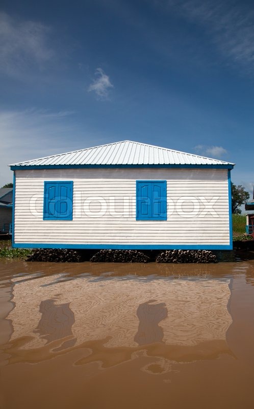 Weisses Haus Mit Blauen Fensterladen Stock Bild Colourbox