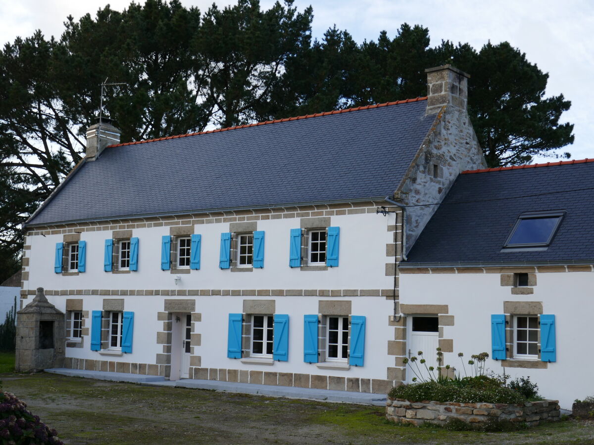 Das Haus mit den blauen Fensterläden Großzügiges Bauernhaus mit 4 Schlafzimmern, großem Garten und Sauna Hunde sind willkommen Das alte Granitsteinhaus liegt in einem kleinen Weiler, der zur Kommune BeuzecCapSizun gehört Eine kleine Straße mit kaum Verkehr führt zu dem Haus mit den auffälligen helblauen Fensterläden.