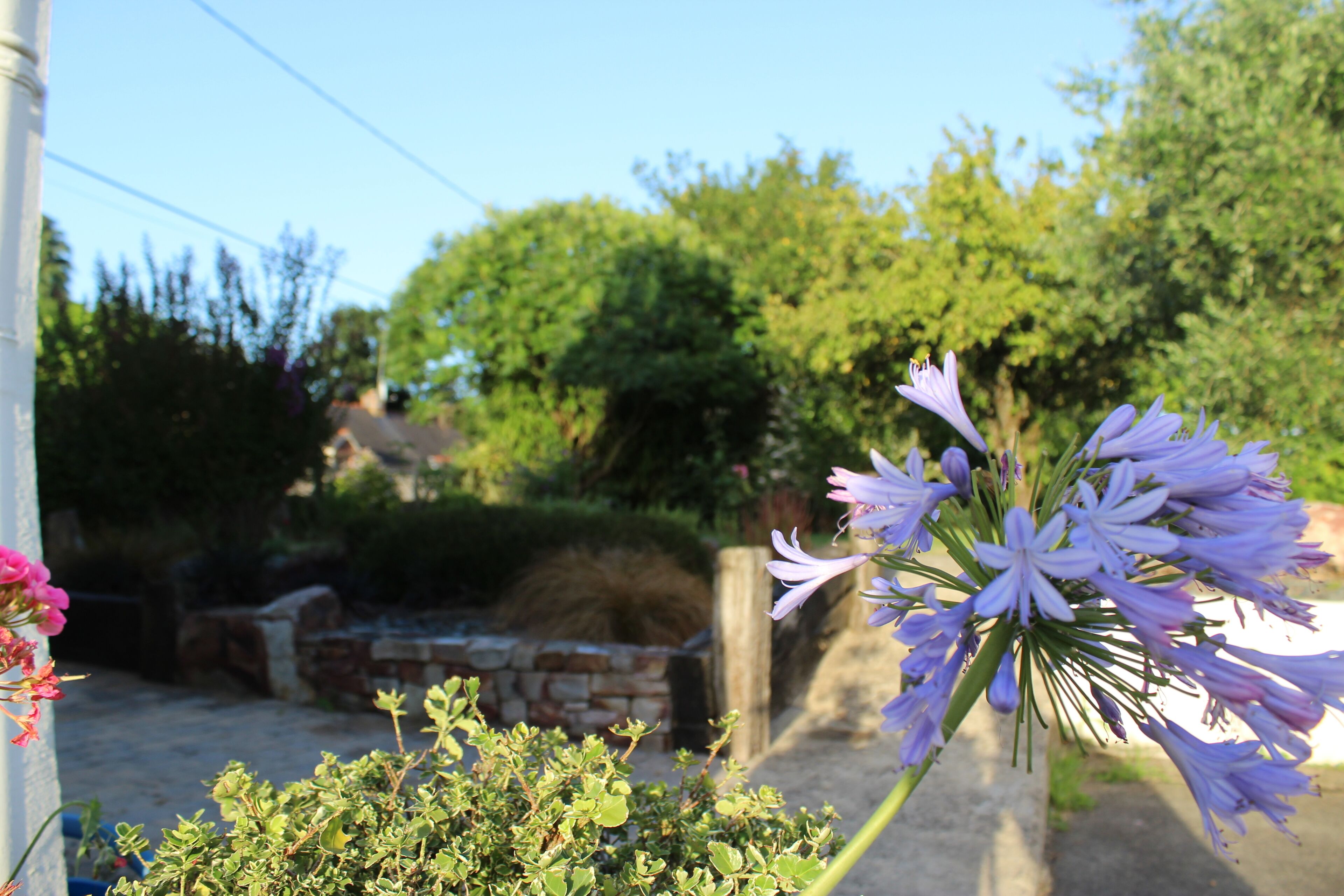 Blaues Hoftor nahe Dorfplatz;. Gartenschmuck an einem Hoftor;. Foto oben Den Atlantik vor der Tür Im weißen Haus mit den blauen Fensterläden wohnen wir Rechts daneben ist das weiße Haus mit Gästewohnung und Balkon im 1 Stock Foto unten Zum Sonnenaufgang gibt es eine Yogastunde auf der Terrasse.