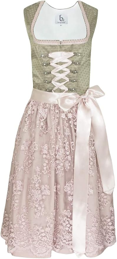 Bergweiss Trachten Damen Dirndl Marlit Grun Rosa 70cm Grosse Grossen Trachtenkleid Spitzenschurze Blumen Stickerei Gr 46 Bis 54 Amazon De Bekleidung