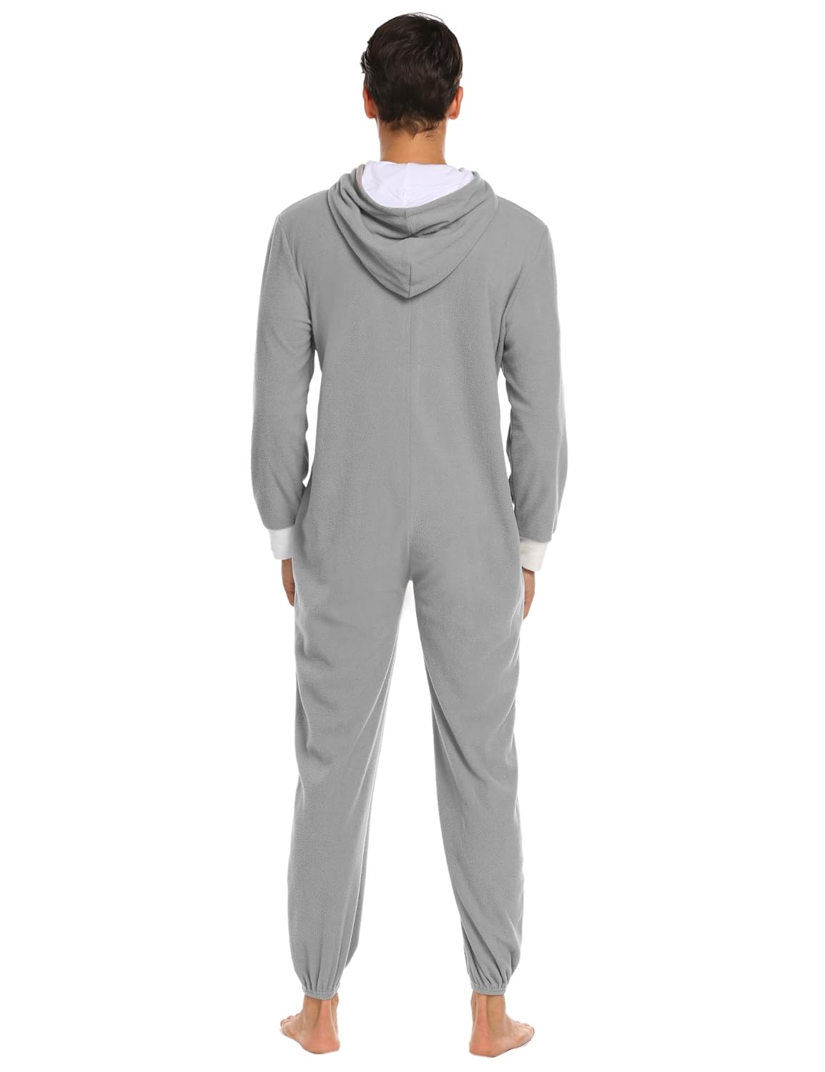 Berdith Herren Jumpsuit Onesie Schlafoveralls Mit Kapuze Trainingsanzug Einteiler Pyjamas Schlafanzug Langarm Manner Trainingsanzug Strampler Grau Xxl