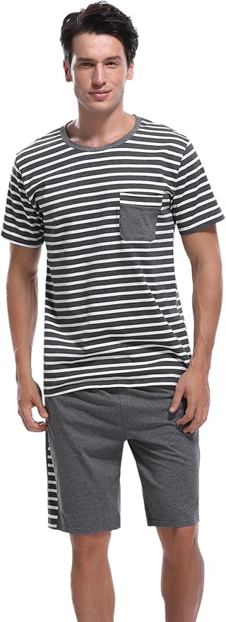 Schlafanzuge Aibrou Herren Baumwolle Kurzarm Pyjama Set Patchwork Zweiteiliger Schlafanzug Bekleidung