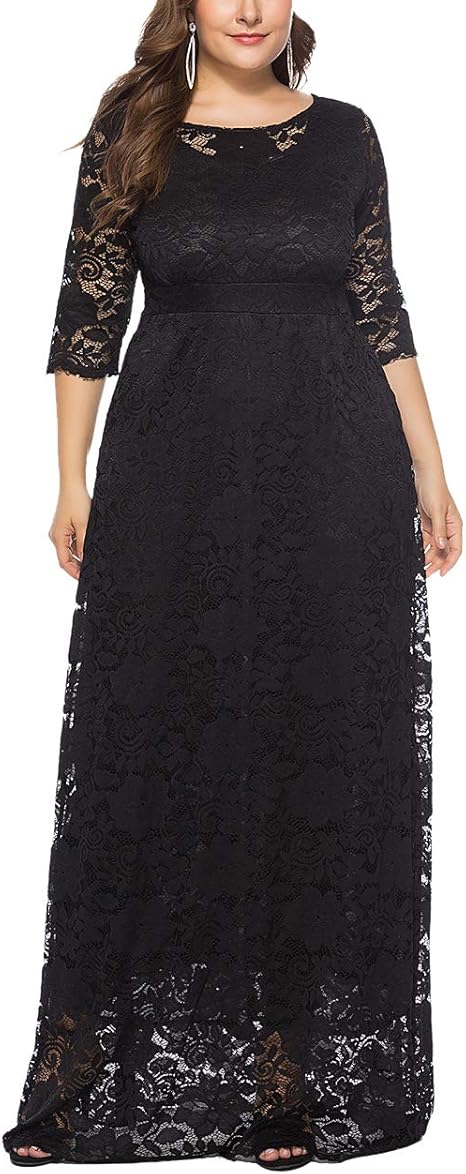 Besbomig Damen Ubergrosse Halbe Hulse Spitze Party Abendkleider Rundhals Eine Linie Maxi Langes Kleid Mit Taschen Amazon De Bekleidung