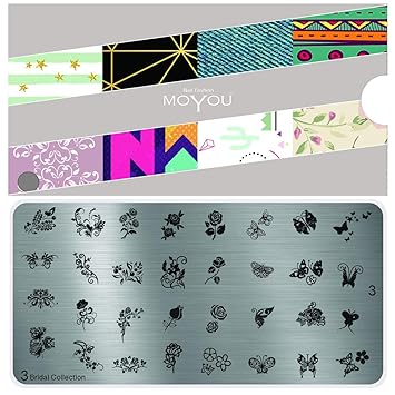 Moyou S Xl Bridal 3 Stamping Schablone Nail Art Stampling Nagel Lack Stempel Blumen Und Schmetterlinge Manikure Amazon De Beauty