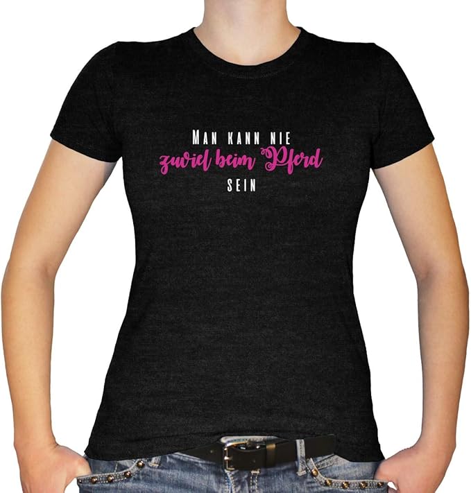 Shirtfun24 Damen Equestrian Fashion Man Kann Nie Zuviel Beim Pferd Sein T Shirt Amazon De Bekleidung