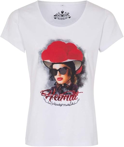 Hangowear Trachtenshirt Clarissa Weiss Schwarzwald T Shirt Mit Bollenhut Heimat Print Damen Rundhals Oberteil Amazon De Bekleidung