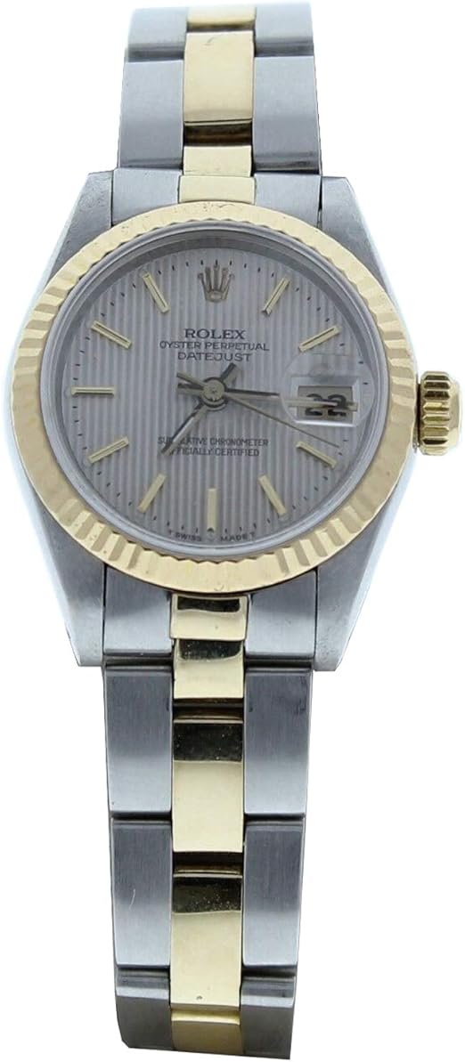 This item Rolex 26mm Steel & Gold Ladys Datejust Silver Stick Dial & Fluted Bezel (Preowned) Rolex Datejust SwissAutomatic Female Watch 67 (Certified PreOwned) Rolex Datejust SwissAutomatic Female Watch (Certified PreOwned). Rolex LadyDatejust ref Metal and Bezels As with all Rolex reference numbers, ref gives certain information about the watch’s makeup In this case, the last digit indicates a yellow Rolesor finish—Rolex’s own description of their blending of yellow gold and stainless steel. Rolex presents the new generation of its Oyster Perpetual watches and brings a new model to the range, the Oyster Perpetual 41, as well as versions of the Oyster Perpetual 36 displaying dials in vivid colours Discover the latest collection on the Official Rolex Website.