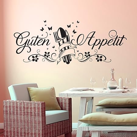 Wandtattoo Guten Appetit Mit Schmetterlingen Essen Kuche Esszimmer Mahlzeit Spruch Braun 800 102 X 41 Cm Amazon De Kuche Haushalt