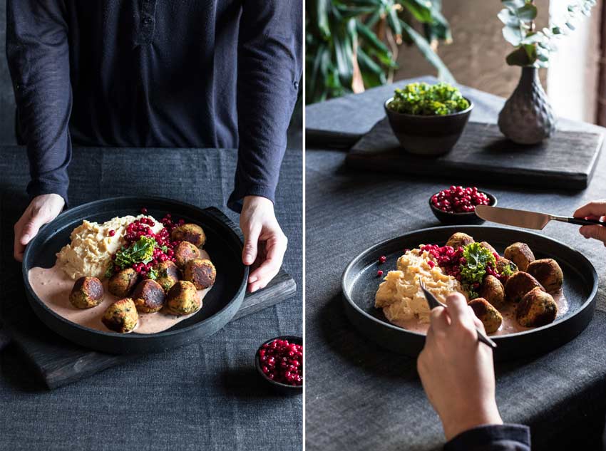 Vegane Und Glutenfreie Kottbullar Mit Klassischen Beilagen Schwedische Gemuseballchen Gronsaksbullar Rezept Gemuseballchen Rezepte Vegane