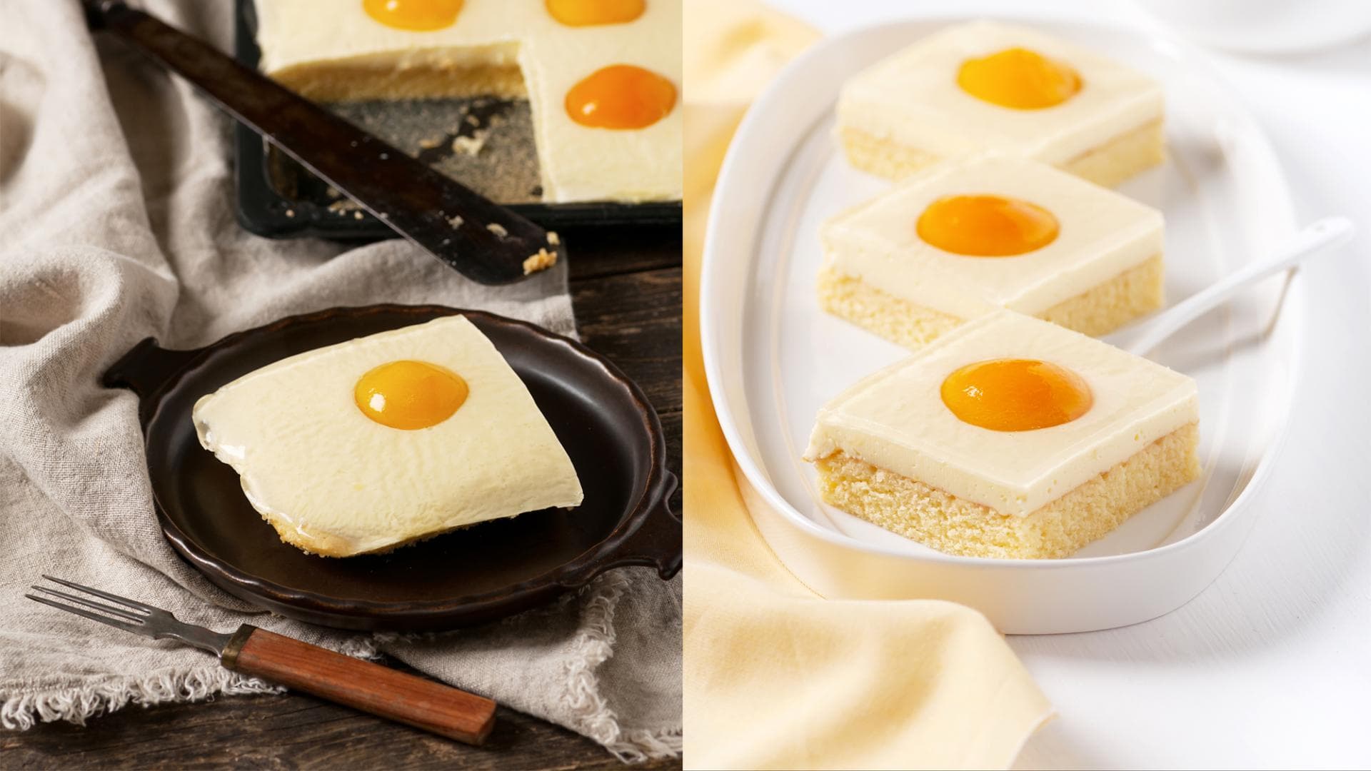 Sanella Spiegeleikuchen Rezept Saftiger Spiegeleierkuchen Vom Blech Mit Aprikosen Pudding Und Schmand