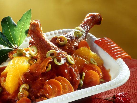Entenkeulen Im Backofen Geschmort Mit Orangensauce
