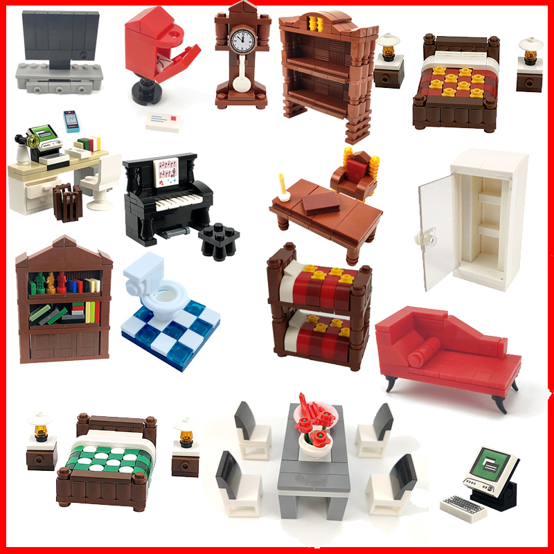 80pcs City House Sitting Room Furniture Sofa Table Diy Building Blocks Bricks Toys Accessories Decorate Compatible With Lego Blocks Aliexpress