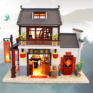 Diy Dollhouse Wooden Miniature Furniture Kit 1 24 Mini Vintage Hotel House With Ebay