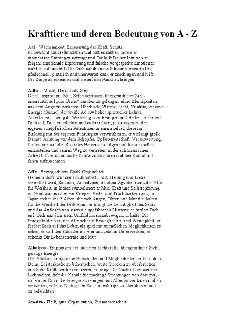 Krafttiere Und Deren Bedeutung Von A Z