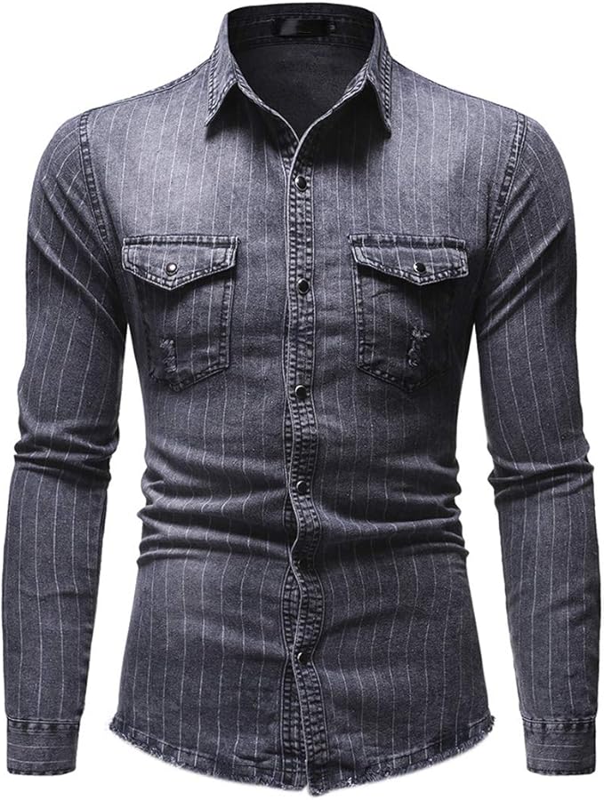 Jeanshemd Herren Denim Shirt Langarmhemd Cowboy Style Gestreift Button Freizeit Brusttaschen Hemd Manner Kent Kragen Business Casual Klassik Slim Fit Shirt Amazon De Bekleidung