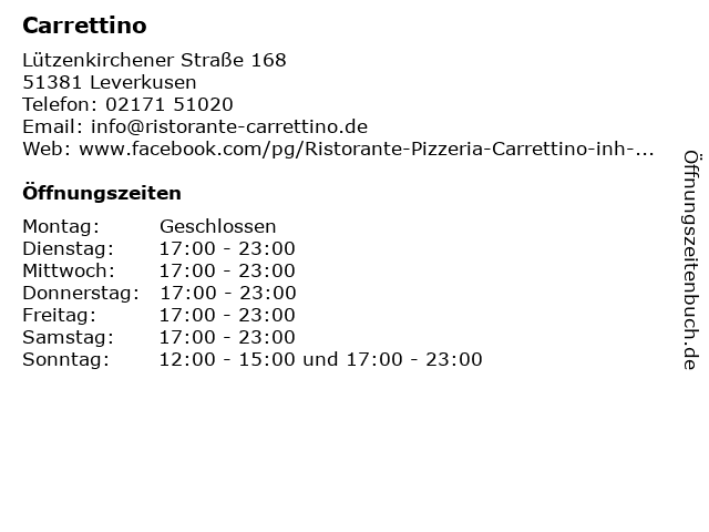 ᐅ Offnungszeiten Carrettino Lutzenkirchener Strasse 168 In Leverkusen