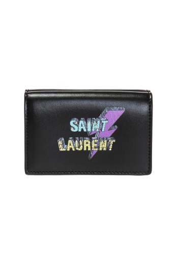 Buy Saint Laurent Saint Laurent Thunder Print Logo Tri Fold Wallet In Black Zalora Hk