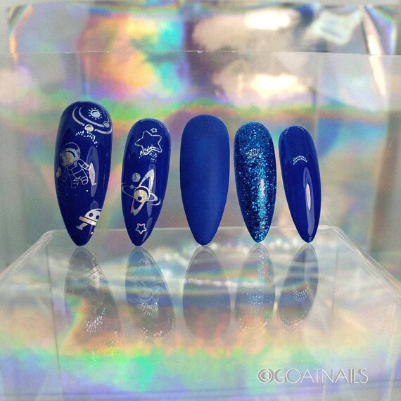Spacy Blue Outer Space Press On Nails All Occasions Stiletto Etsy