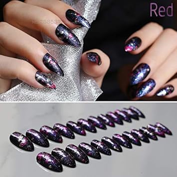 Amazon Com 24pcs Blue Outer Space 3d Flash Stiletto False Nails Purple Galaxy Fake Nails Almond Starry Sky Nails Yellow Dream Space Pointed Red Beauty