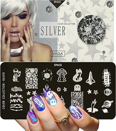 Vaga Outer Space Themed Metal Nail Art Stamping Designs Plate With Images And Pictures For Manicure Stamps Transfers Amazon Ca Beauty