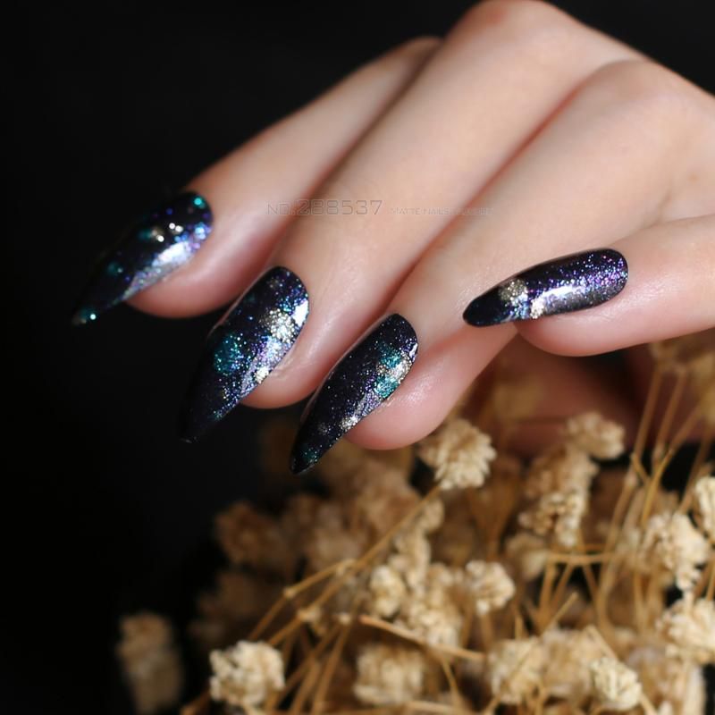 Buy Homely 24pcs Blue Outer Space 3d Flash Stiletto False Nails Purple Galaxy Nails Almond Starry Sky Nails Yellow Dream Space Pointed Blue Online At Low Prices In India Amazon In
