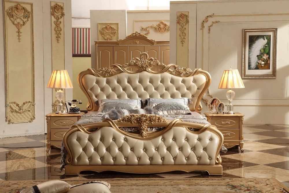 Free Shipping King Size Royal Champagne Soft Bed Wood Carving Leather Bed European Style Master Bedroom Large Size Bed Mb A0312 Beds Aliexpress