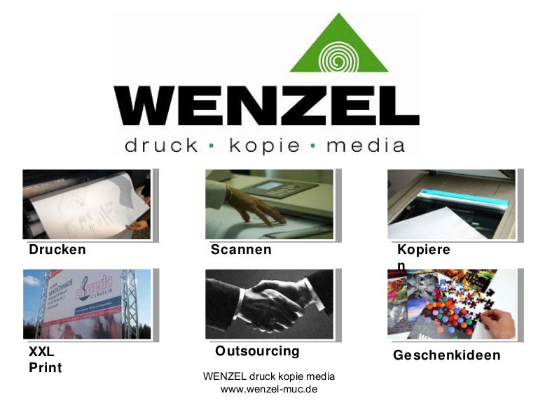 – Das ist unser Anspruch seit der Gründung der WENZEL Gruppe 1969 Unser konsequentes und erfolgreiches Festhalten an diesem Anspruch hat uns dazu gemacht, was wir heute sind ein leistungsstarker und zuverlässiger Partner im Bereich der Vervielfältigung von Dokumenten und. Wenzel druck • kopie • media, München Gefällt 347 Mal · 1 Personen sprechen darüber WENZEL druck • kopie • media ist spezialisiert auf die Dienstleistungen Drucken, Scannen, Kopieren Mehr unter. Wenzel GmbH DruckKopieMedia, München Bezirksteil Angerviertel, Für jeden Kunden das Optimale leisten!.
