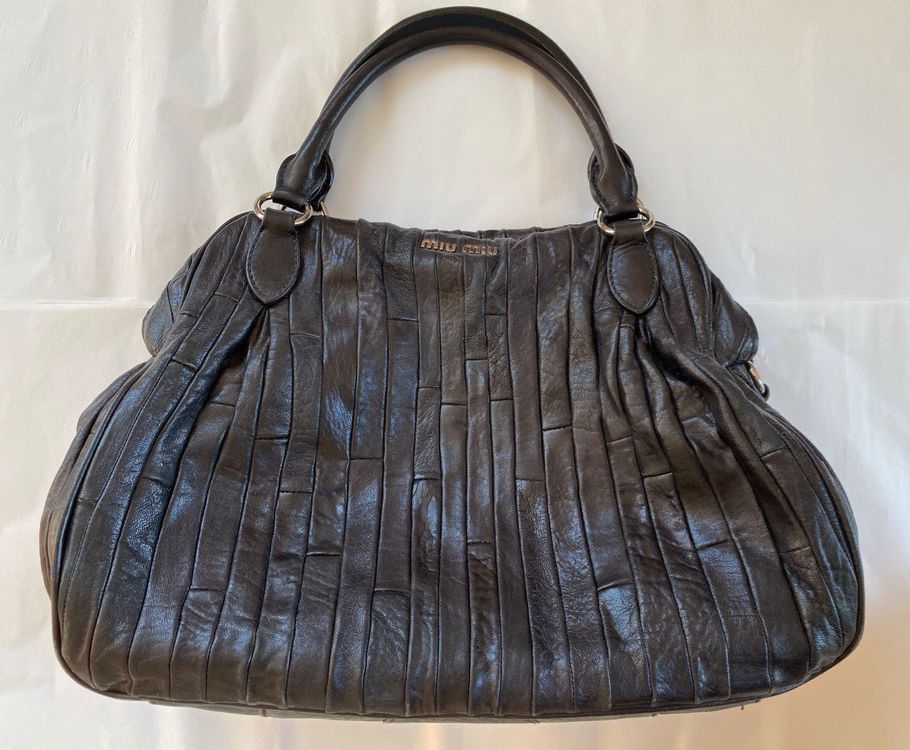 MIU MIU Tasche by Prada Shopper *** Original MIU MIU TASCHE *** by Prada Ich verkaufe diese Tasche oder aber tausche sie auch gerne gegen ein anderes Miu MiuModell (siehe letztes Bild in der Galerie!) schwarz Tasche, vorn noch ne separate ReißverschlussStecktasche, Maße Boden ca 27 x 13cm Höhe ca 42cm, sehr schick gemacht. Find many great new & used options and get the best deals for MIU MIU by PRADA Bag Black Leather Gauffre Original Used at the best online prices at eBay!. Miu Miu TwoWay Tasche Gathers Schwarz Glanz Leder RT03 ab 275,00 CHF Miu Miu TwoWay Bag Silber Metallic Leder VerfügbarkeitsNachricht Bitte anmelden / registrieren um eine EMail zu erhalten, sobald das Produkt wieder verfügbar ist Anmeldung / Registrierung.