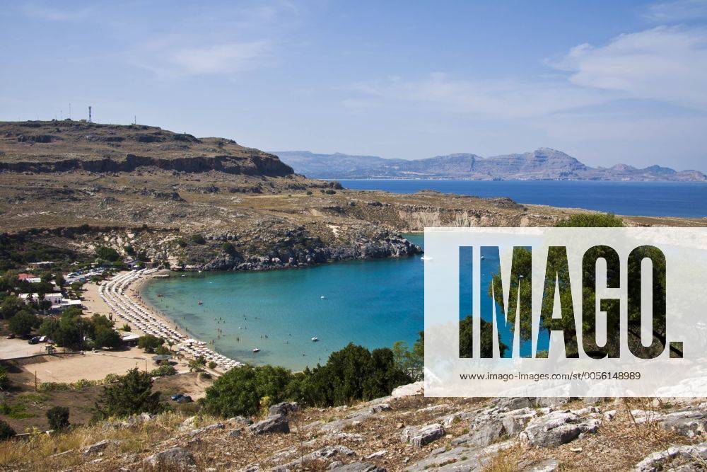 View Of The Lindos Bay And The Beach Rhodes Greece Stock Photo Picture And Royalty Free Image Image