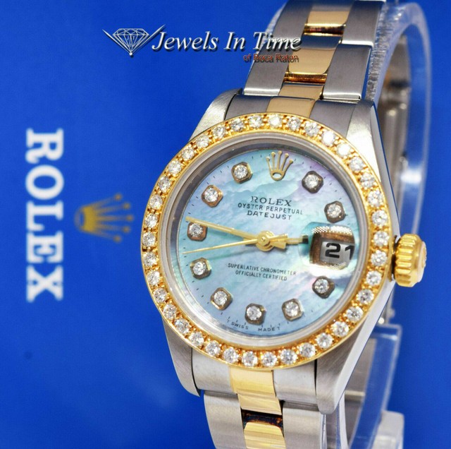 Rolex Damen Datejust 18k Gelbgold Saphir Diamant Quickset Uhr Gunstig Kaufen Ebay