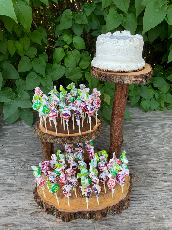 Large Elm Wood Rustic Cake 30 Cupcake Or 75 Lollipops Cake Etsy