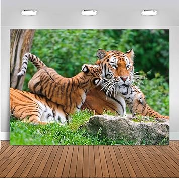 Amazon Com Tiger Family Photography Background Lelez 7x5ft Forest Wild Animals Jungle Safari Theme Party Backdrop Vinyl Studio Photo Booth Props Geev438 Camera Photo