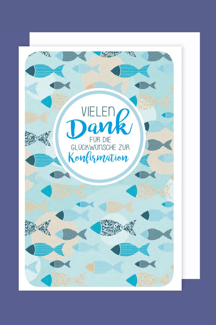 Konfirmation Danksagung Karte 5er Set Blauer Schwarm Fische B6 Avancarte