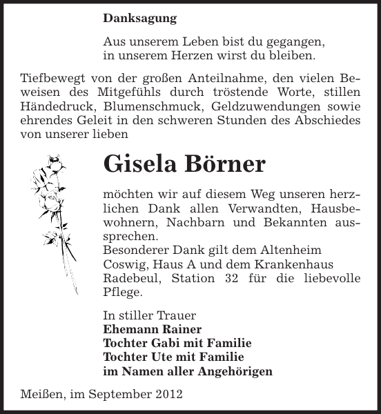 Gisela Borner Danksagung Sachsische Zeitung