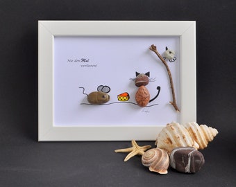 Lovely flowerpot is made of a beach stone, pebble from the beach of sunny Sicily Original design of Michaela Karova mihulli Hand made engraved planter is perfect present for Your friends, family or just for You to make You happy and feel the zen inspiration. Irish Pebble Art / Customised Framed Picture Love Cats unique personalised wedding or anniversary gift This "Love Cats" pebble art picture is a beautiful personalized handcrafted pebbleart piece it makes a lovely gift (especially puurrrfect as a housewarming gift for a cat lover or an anniversary gift/wedding gift) and I have left room. Wie bemale ich Steine im Boho Stil?.