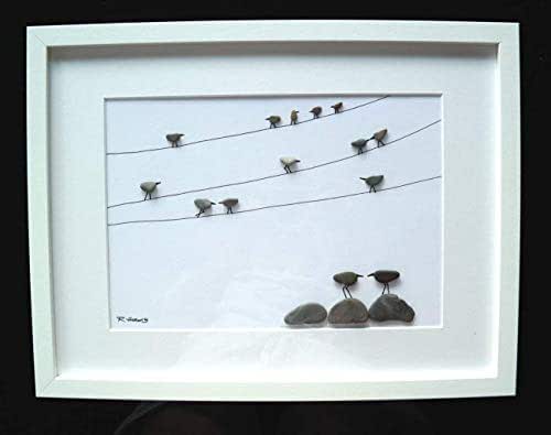 Kieselsteinbild Kieselsteinkunst Pebble Art Vogel Auf Oberleitung 30x40 Gerahmt Amazon De Handmade