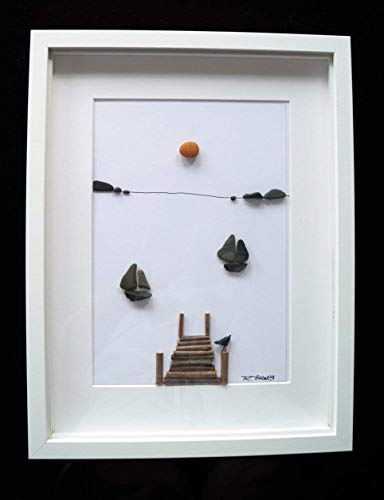 Kieselsteinbild Pebble Art Steinbild Kieselsteinkunst Segelboote Und Steg 30x40 Amazon De Handmade