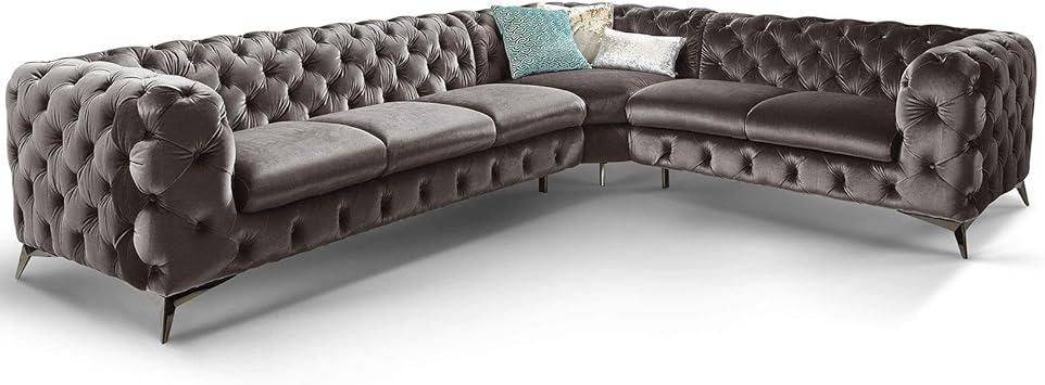 Moebella Chesterfield Corner Sofa Big Emma Velvet Fabric Silver Grey Dark Red Petrol Turquoise Xxl Designer Upholstered Corner Grey Standard Amazon De Kuche Haushalt