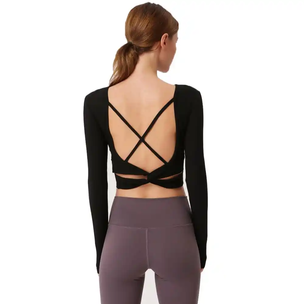 Langarm Sport Crop Top Frauen Yoga Zuruck Kreuzung Gurte Knoten T Shirts Bh Fitness Pilates Laufen Tops T Shirt Sportswear Yoga Shirt Aliexpress