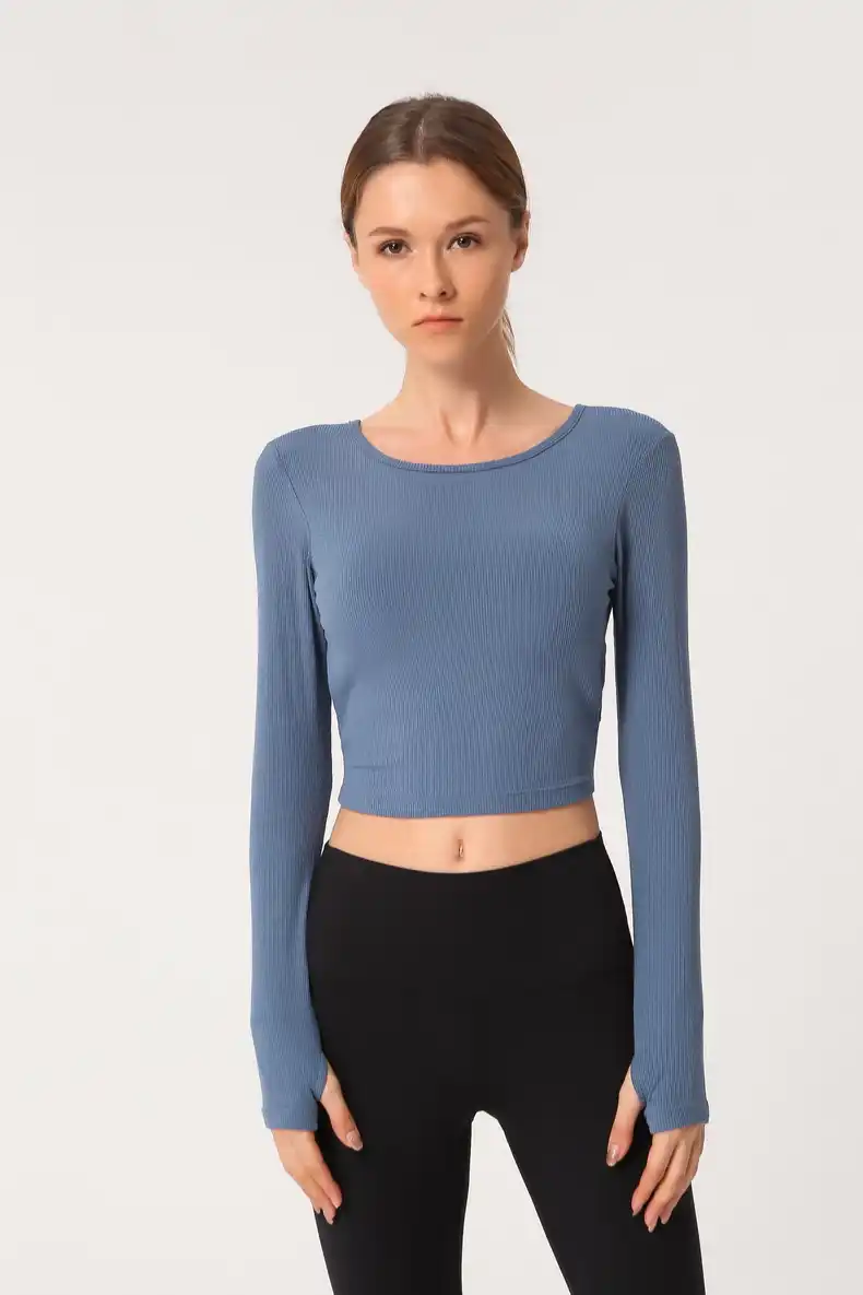 Tnwmhd Sport Top Fitness Frauen Yoga Shirt Workout Crop Top Atmungsaktiv Langarm Nahtlose Top Fitness T Shirt Laufbekleidung Fur Frauen Gunstig