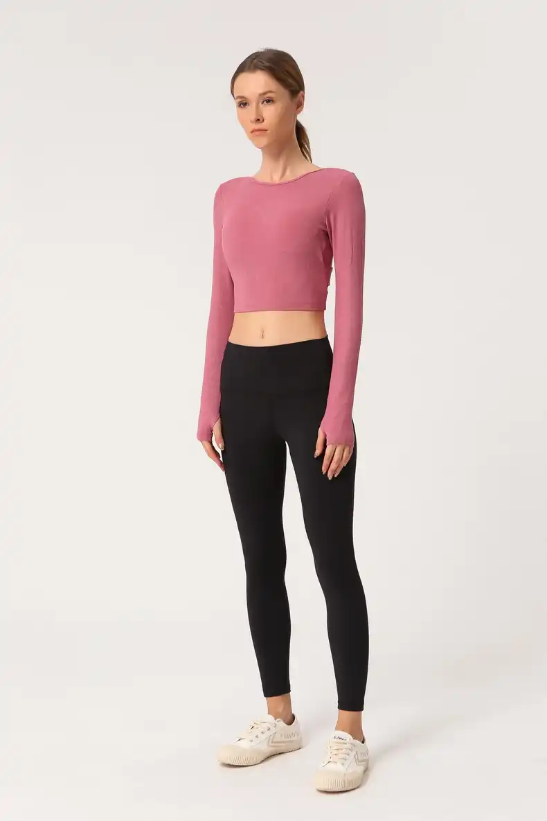 Kai Guo Nahtlose Crop Top Fur Frauen Gym Pink Langarm Workout Fitness Sport Top Mit Daumenloch Ausgestattet Skinny Energy Yoga Shirts Amazon De Bekleidung