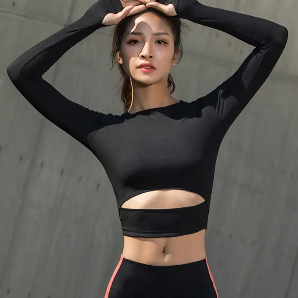 Sfit Frauen Langarm Laufen Shirts Sexy Ausgesetzt Nabel Yoga T Shirts Quick Dry Fitness Gym Crop Tops Solide Sport Shirts Yoga Shirts Aliexpress