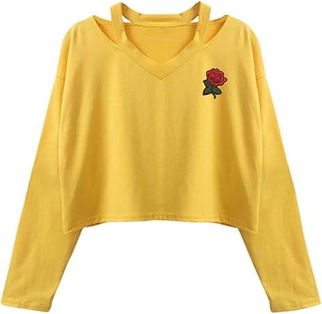 Weant Damen Sommer T Shirts V Ausschnitt Rose Stickerei Kurzarm Crop Top Langarm Sport Bauchfreier Oberteil Bluse Shirt Hemd Frauen Teenager Madchen Pullover T Shirt Amazon De Musikinstrumente