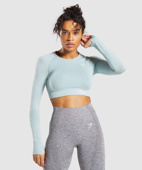 Gymshark Flex Sports Long Sleeve Crop Top Black Grey Damen Crop Tops Gymshark